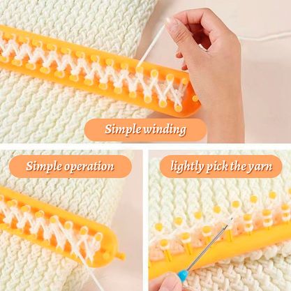 Použití tohoto nástroje je neuvěřitelně snadné – vše, co musíte udělat, je nasadit vlnu a omotat ji kolem výstupků. Jakmile budete hotovi, jen vytáhněte vlnu z nástroje!